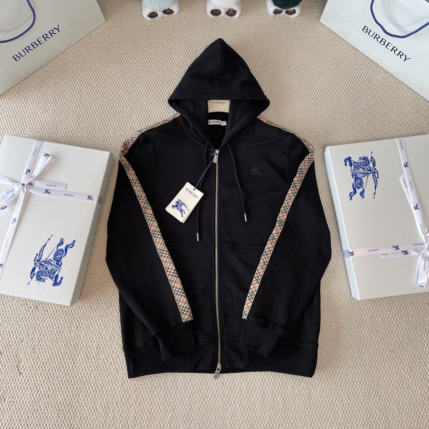버버리 체크 트리밍 코튼 지퍼 후디