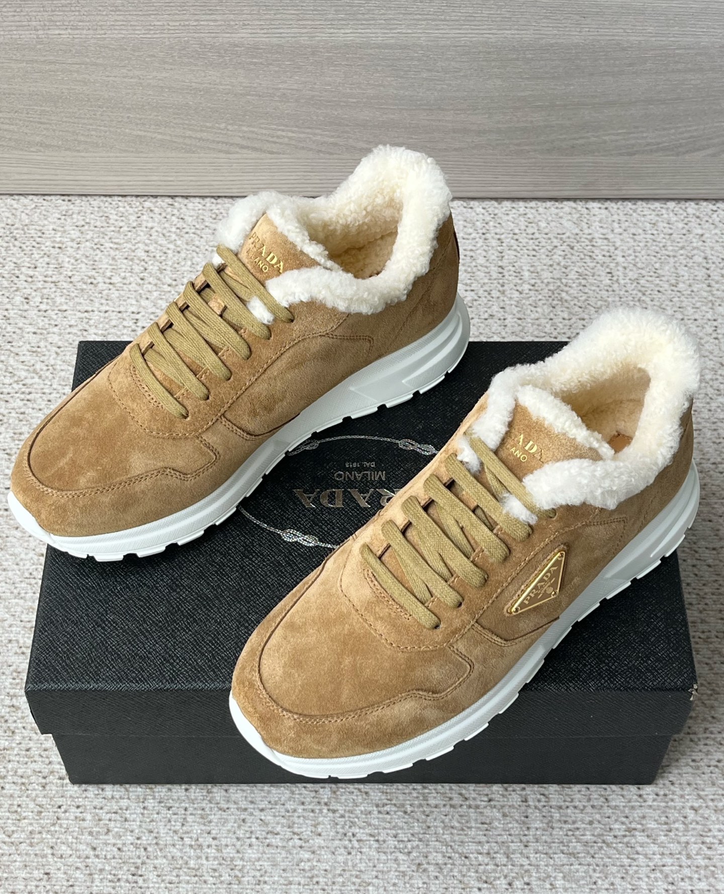프라다 남성 프락스 스웨이드 스니커즈
