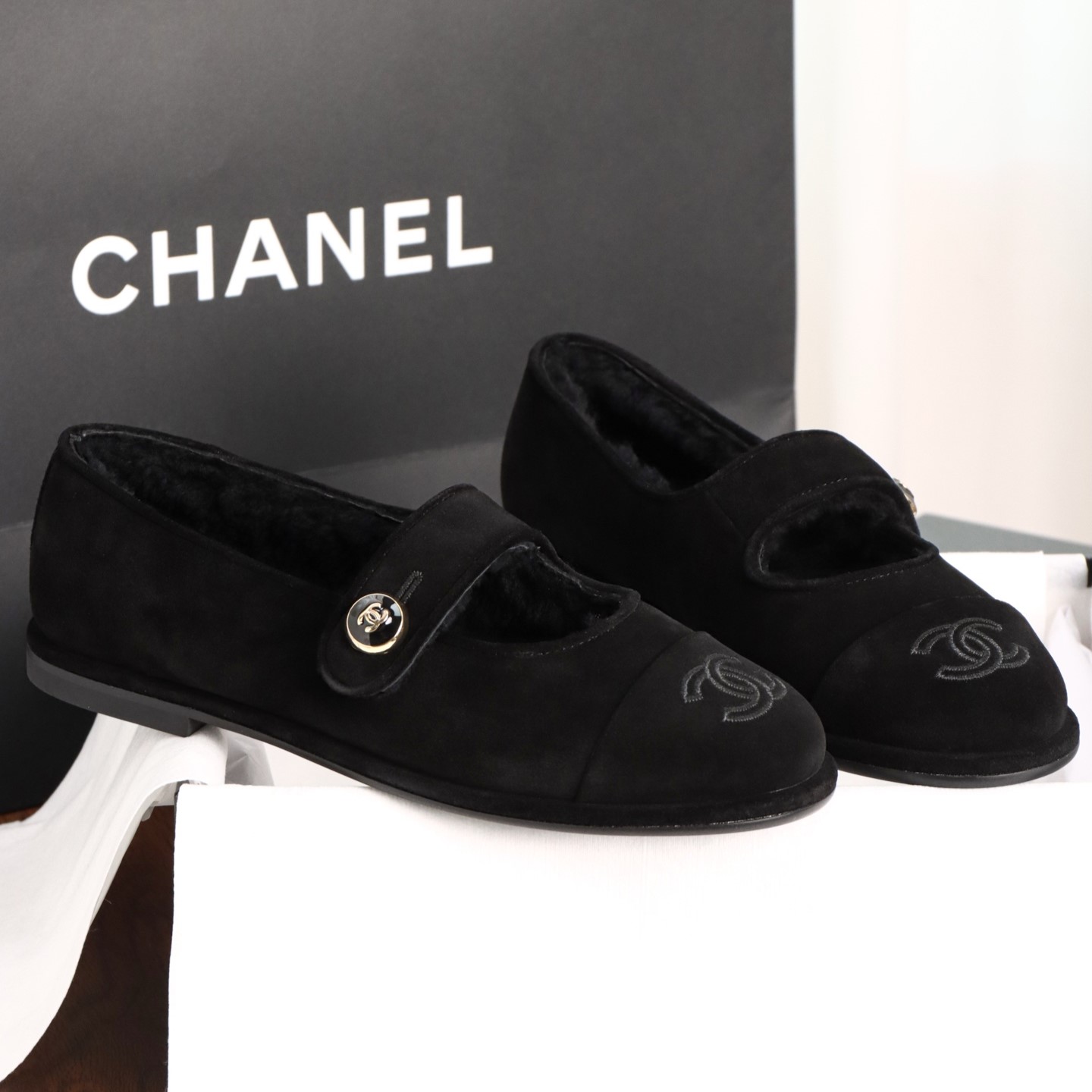 샤넬 스웨이드 메리제인 플랫 슈즈
